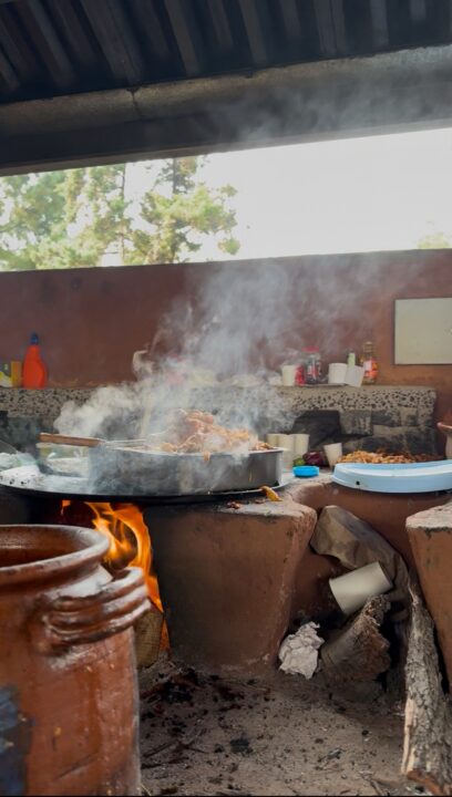 Pero la experiencia no terminó en los textiles. Un eje fundamental fue su oferta gastronómica, que celebró las cocinas tradicionales a través de propuestas como El Huachito de Huetano y La Chinampa de Iztacalco, auténticas cocinas de humo que llevaron sabores profundos y técnicas ancestrales al corazón de Los Pinos.